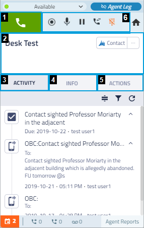 This page explains elements of the agent application while handling a contact, plus the various actions you can perform during an interaction. To learn about actions you can perform after handling a contact, such as tagging another user with an @Mention, see the Post-Contact Actions page.
