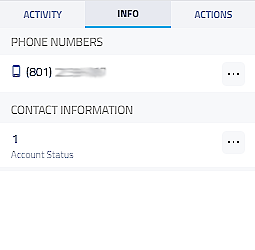 The Info tab displays basic information for the contact, and offers you the ability to copy the number or information to your clipboard to paste it elsewhere. |